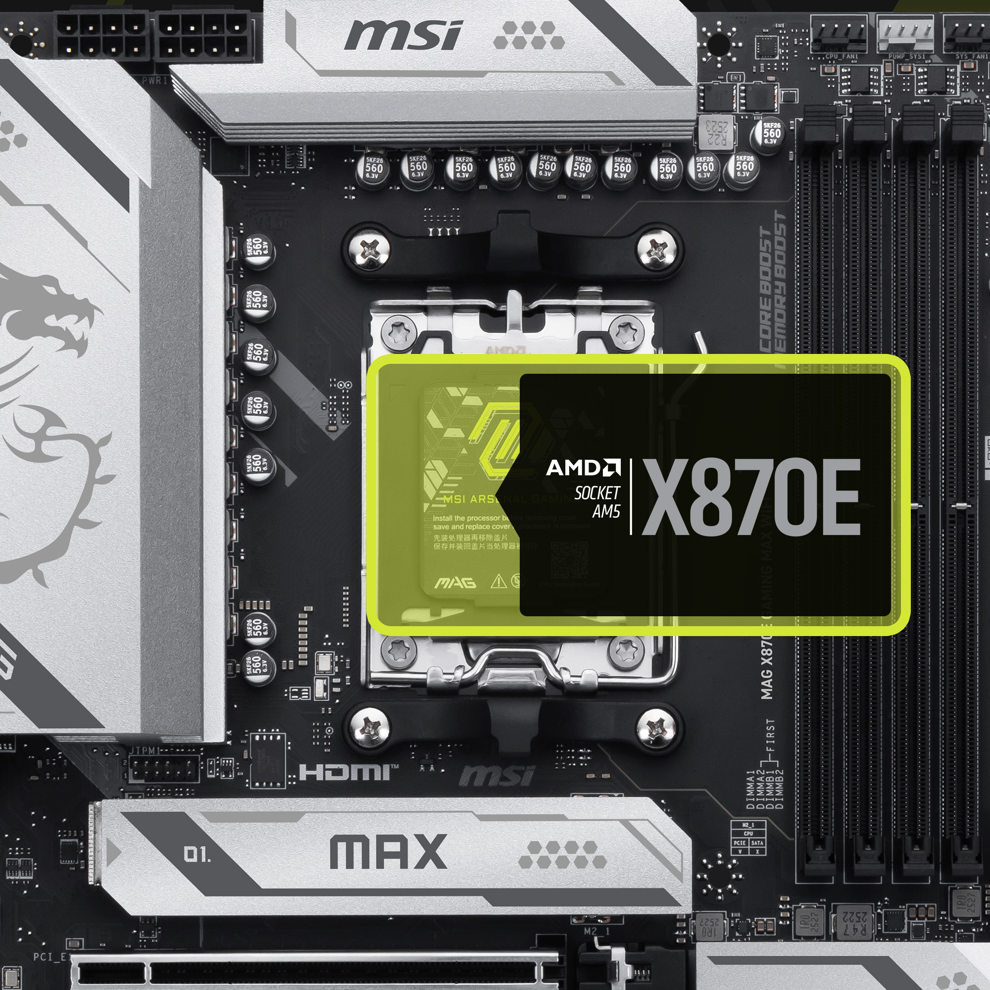 La X870E GAMING MAX WIFI est une carte mère ATX gaming conçue autour du dernier chipset AMD X870E qui prend en charge les processeurs de la série AMD Ryzen 9000 / 8000 / 7000, avec Wi-Fi 7, LAN 5G, PCIe 5.0, et DDR5 et offre le compromis idéal prix/matériel haut de gamme.