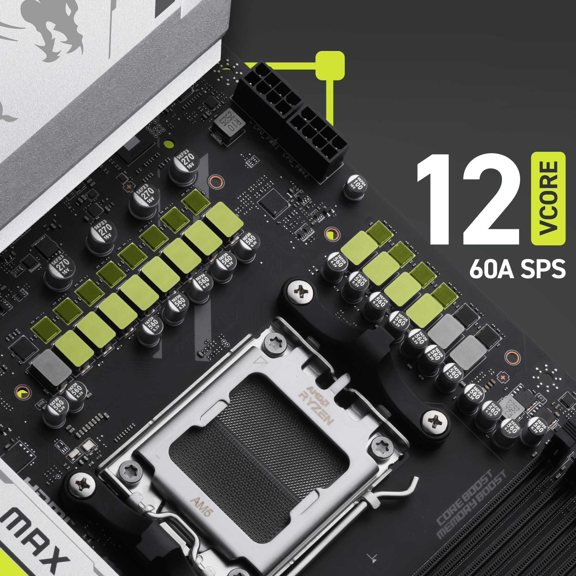 | CPU | Supports AMD Ryzen™ 9000/ 8000/ 7000 Series Desktop Processors Socket AM5 |