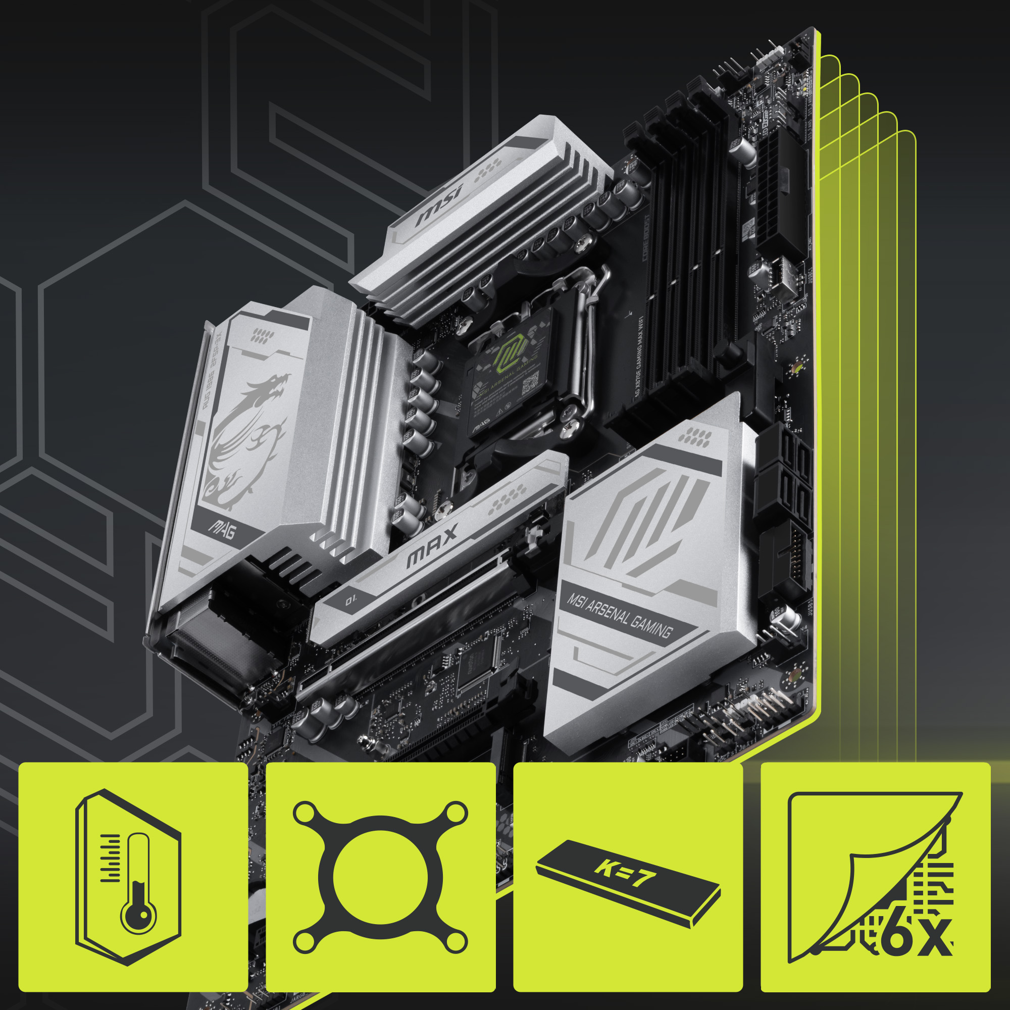 Frozr Guard : Radiateur étendu, pads thermiques pour MOSFET 7W/mK, pads thermiques supplémentaires et M.2 Shield Frozr pour une meilleure dissipation thermique.