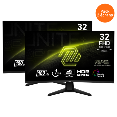 199,98 €279,98 €-29%Prix unitaire /Indisponible199,98 €279,98 €-29%Prix unitaire /IndisponiblePack de 2 Écrans Gamer | PRO MP243XW
