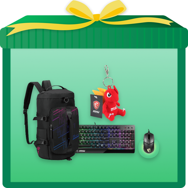 Le pack contient un sac à dos MSI, un porte-clés MSI Lucky et un pack clavier/souris VIGOR GK30 COMBO.